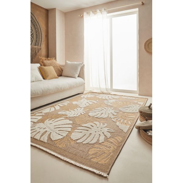 Tapis intérieur extérieur aspect jute jaune Tijuana 9062 (170 x 120 cm)