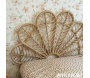 La tête de lit est fabriquée à la main à partir de rotin naturel. Elle dessine un motif de fleur aux larges pétales en éventail.
