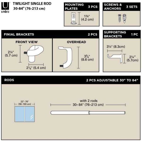 Tringle à rideaux en acier noir mat Twilight (Longueur réglable de 76 à 213 cm)